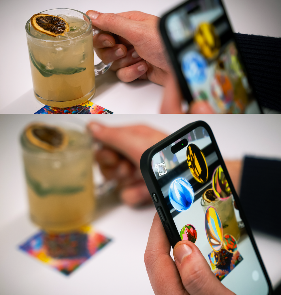 With friends, a partner, or on your own, each cocktail comes alive through our free XR App which offers you a piece of digital art to take home.