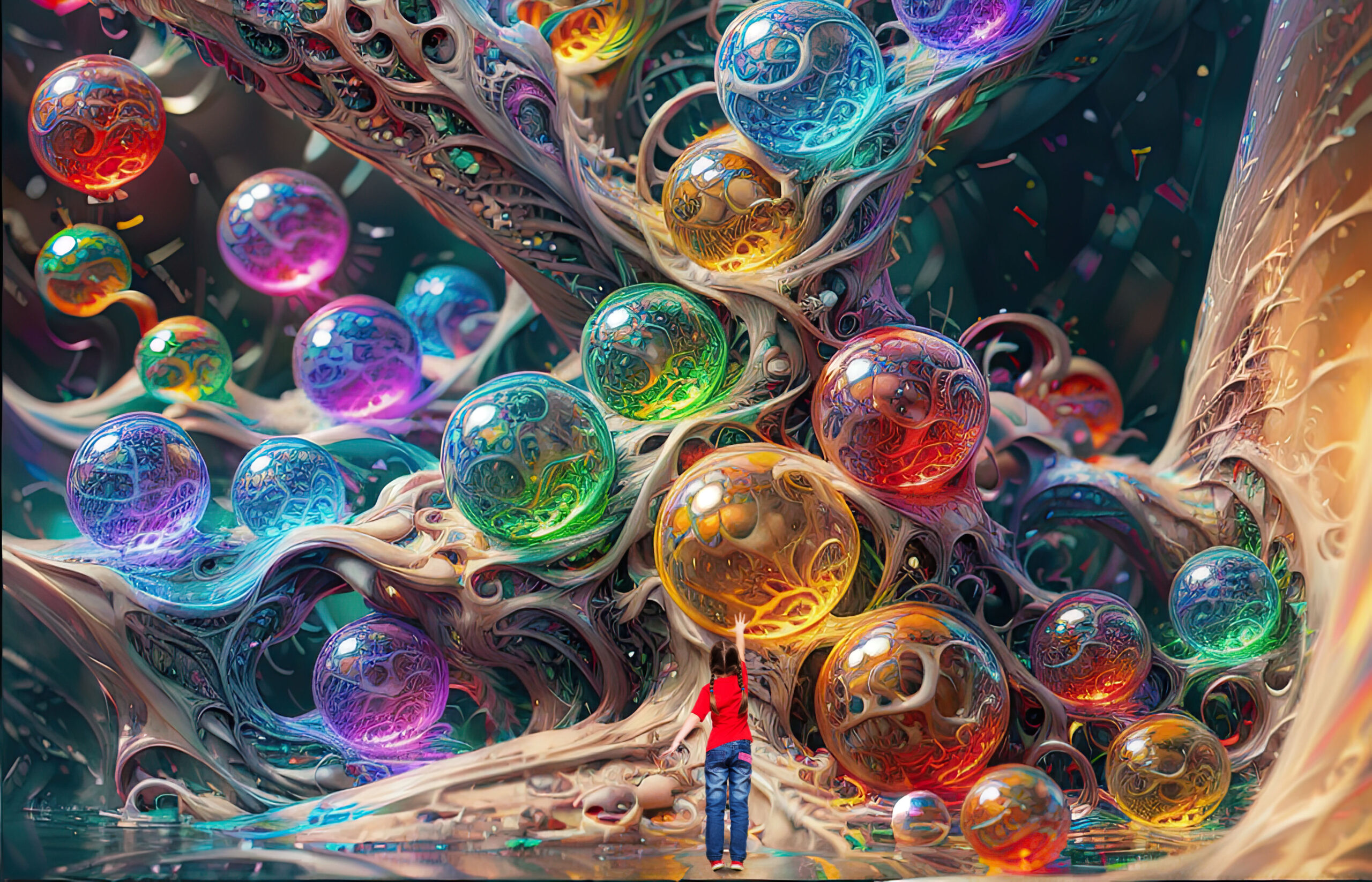 World of AI·magination takes visitors on a poetic and mesmerizing audio-visual journey that celebrates the timeless power of imagination. It underscores the idea that, regardless of age or position, there exists within each of us an enduring sense of wonder and a thirst for uncharted possibilities. This exhibition masterfully combines generative algorithms with human creativity to create a unique visual experience, blurring the lines between human creation and machine computation.