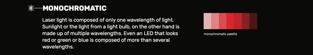 Lasers are unique because they are monochromatic, which is a fancy way of saying they are composed of only one wavelength of light. This is unique because most light sources that we know like the sun, a light bulb and even an LED screen are composed of multiple wavelengths of light.